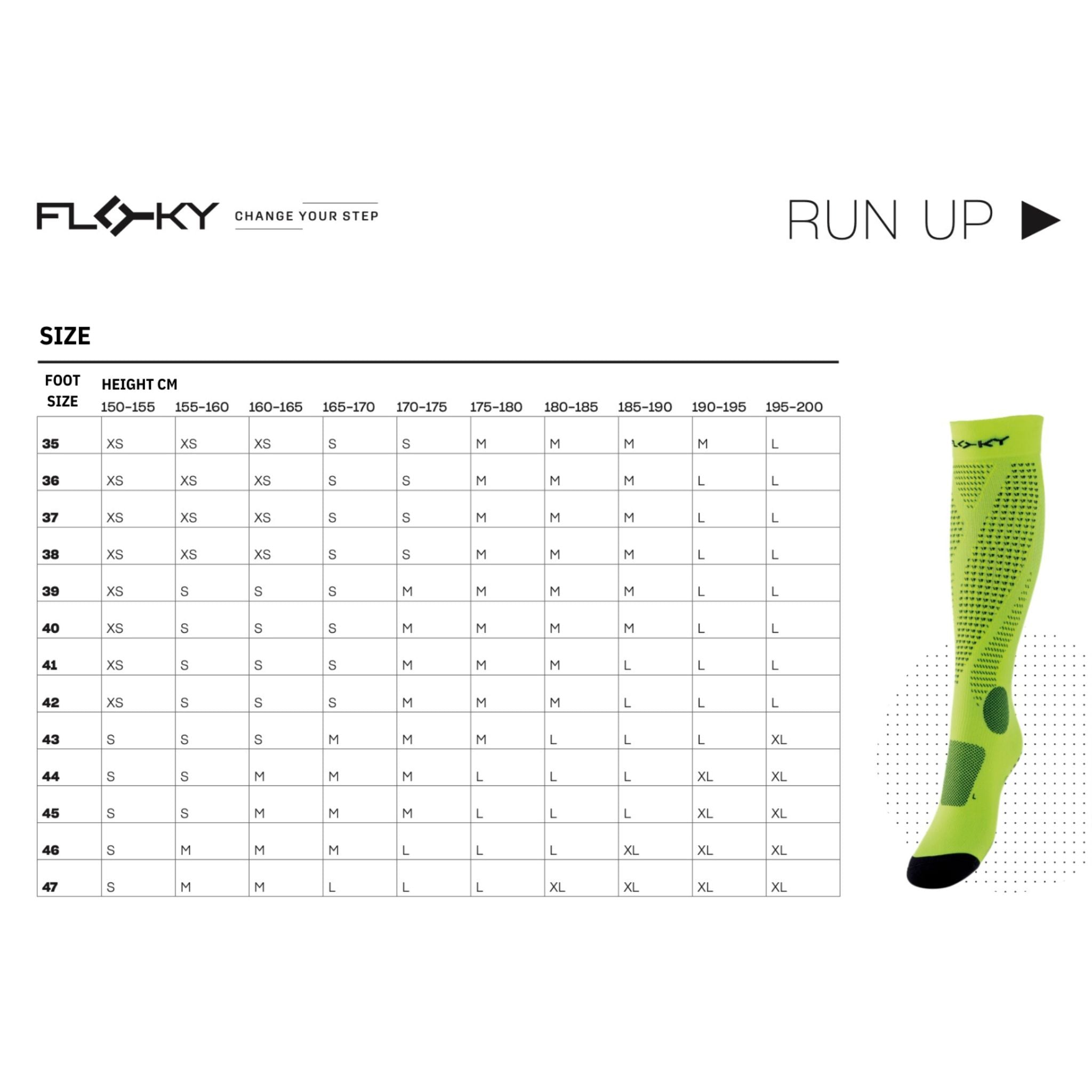 RUN UP Long is the specific running sock designed by FLOKY to better support all biomechanical functions of the foot and leg while providing protection against injuries and wear, faster recovery, improved performance, and a better environment.