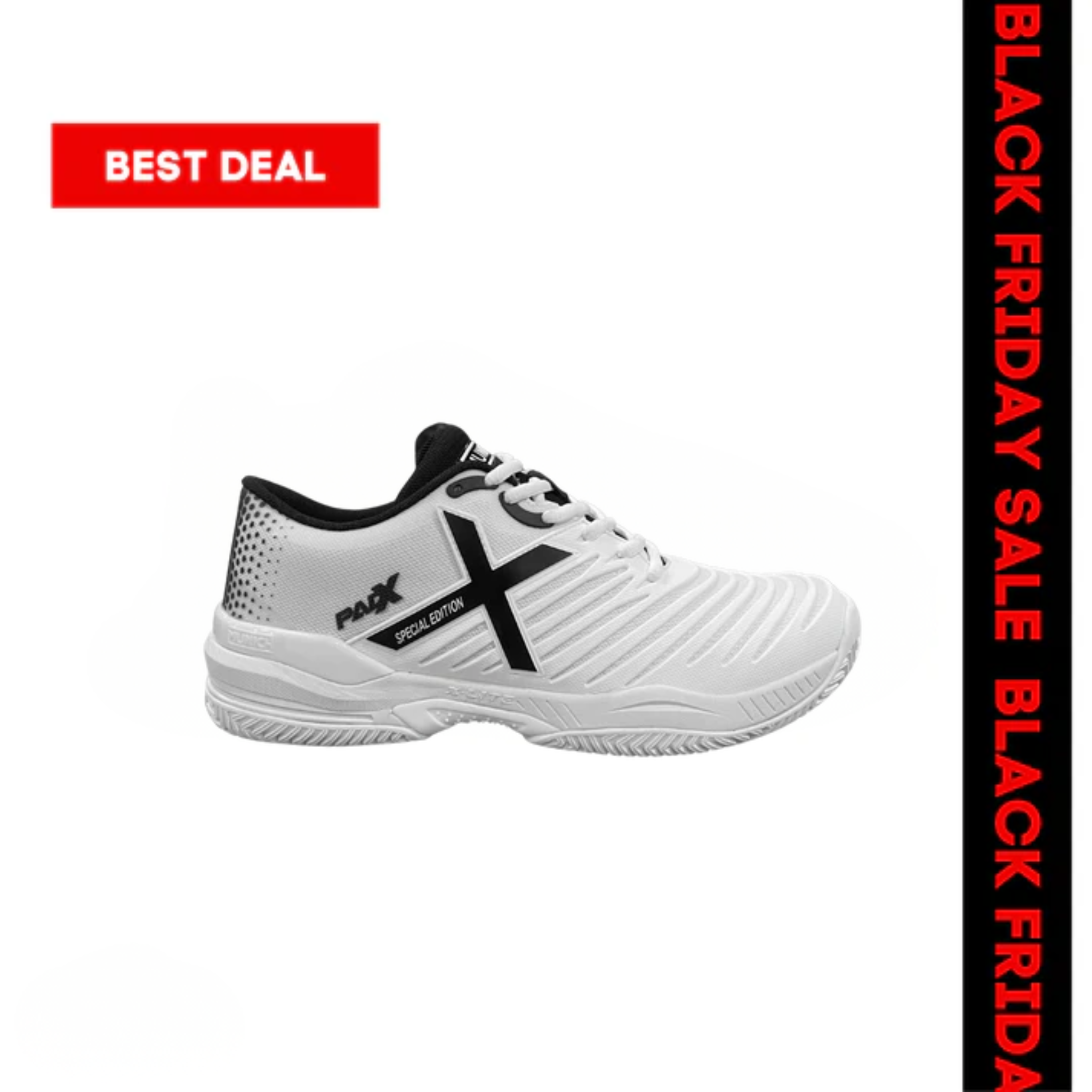 Step into unparalleled comfort with the PADX Padel Shoes. The soles have a soft and comfortable feel, providing a plush experience with every step. Please note that the PADX tends to fit smaller, so if you're unsure about the size, we recommend choosing one size bigger for a better fit.